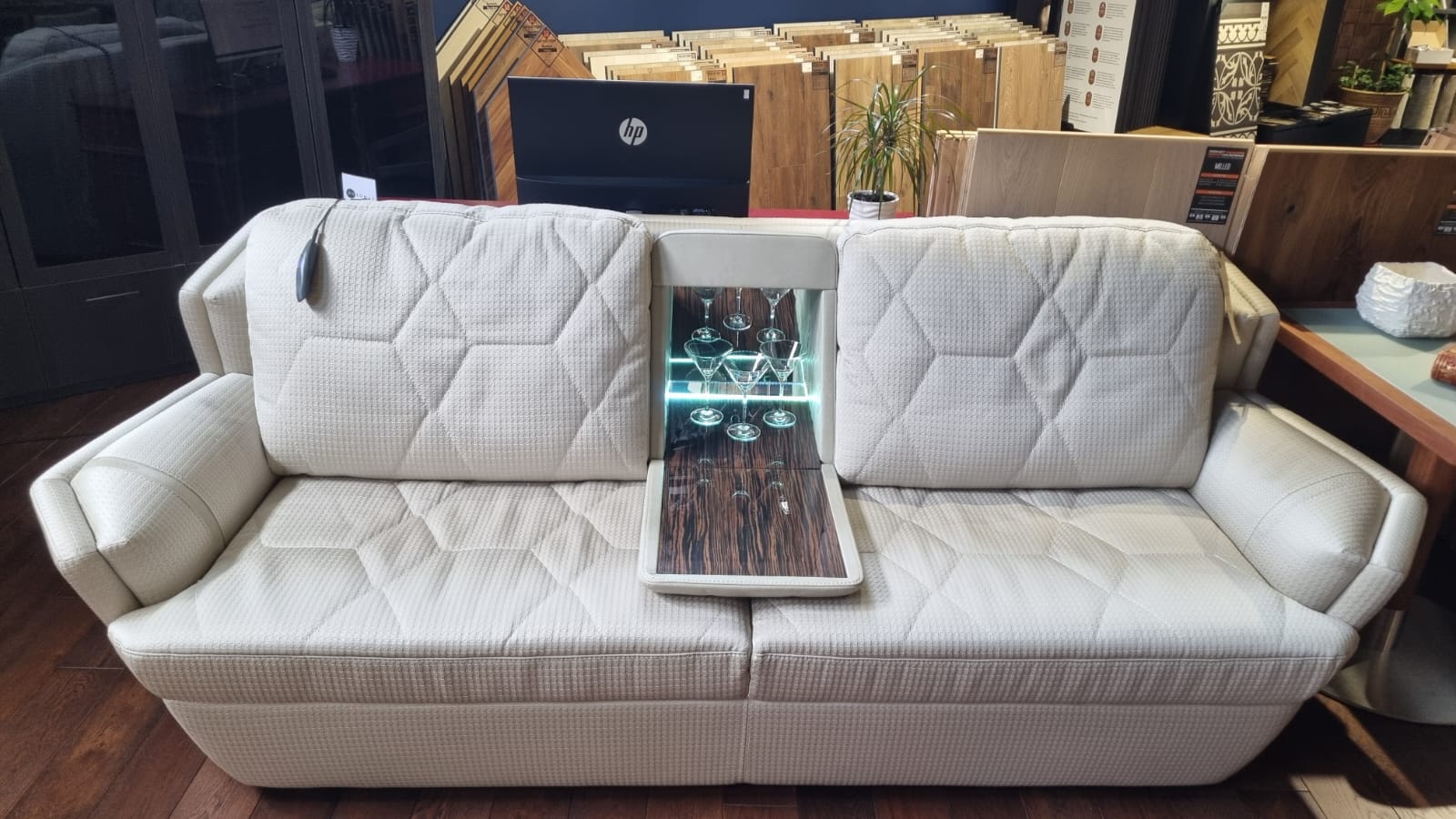 Наличие бара со встроенной подсветкой, является изюминкой данного дивана.