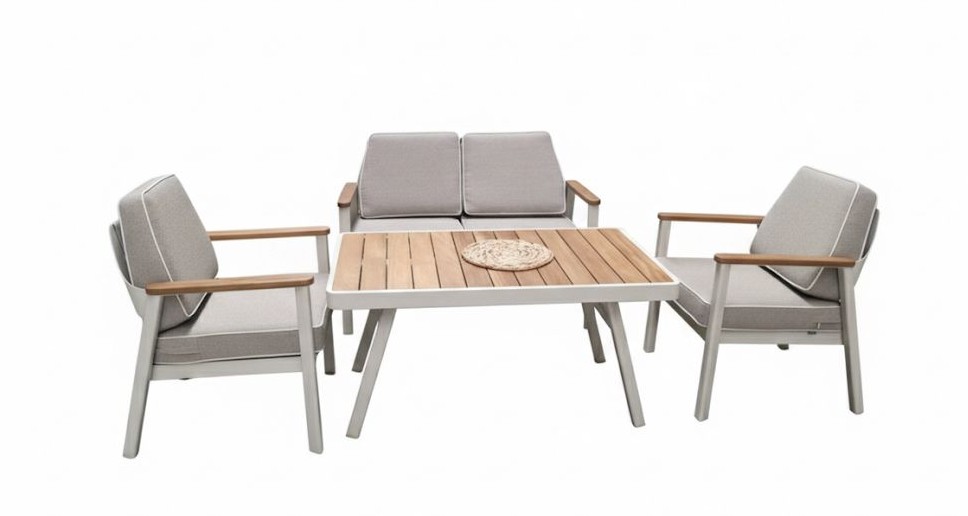 Кресла и стол изготовлены из алюминиевого сплава с порошковой окраской.