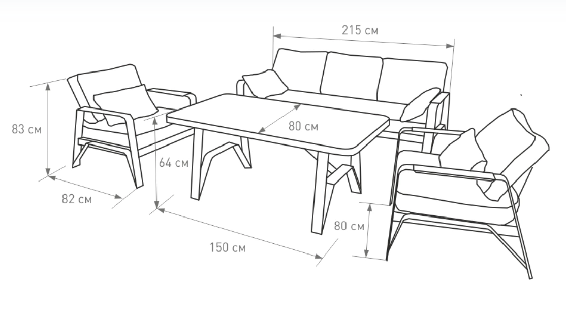 Кресла и стол изготовлены из алюминиевого сплава с порошковой окраской.