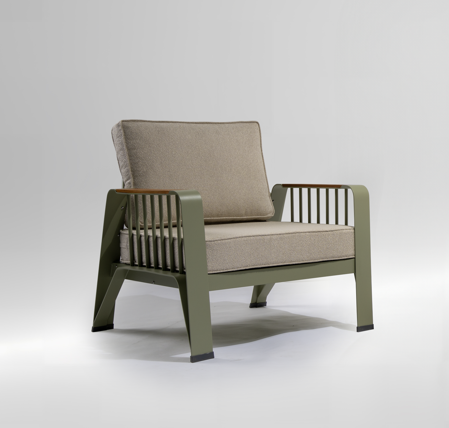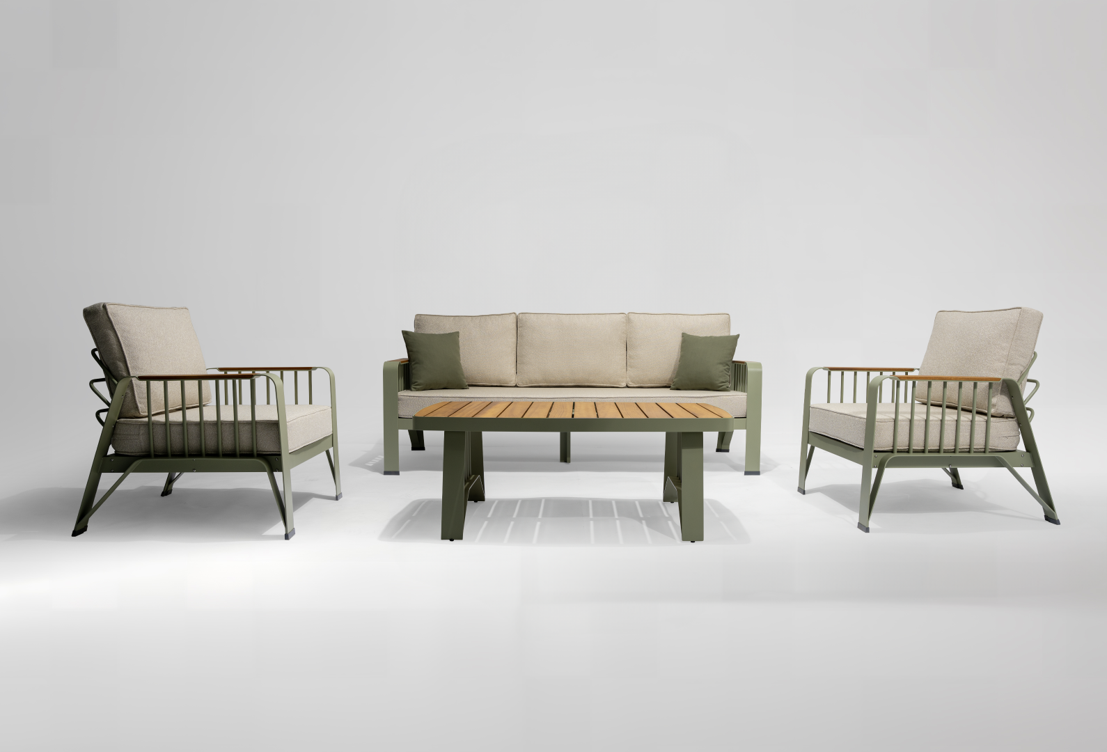 Кресла и стол изготовлены из алюминиевого сплава с порошковой окраской.