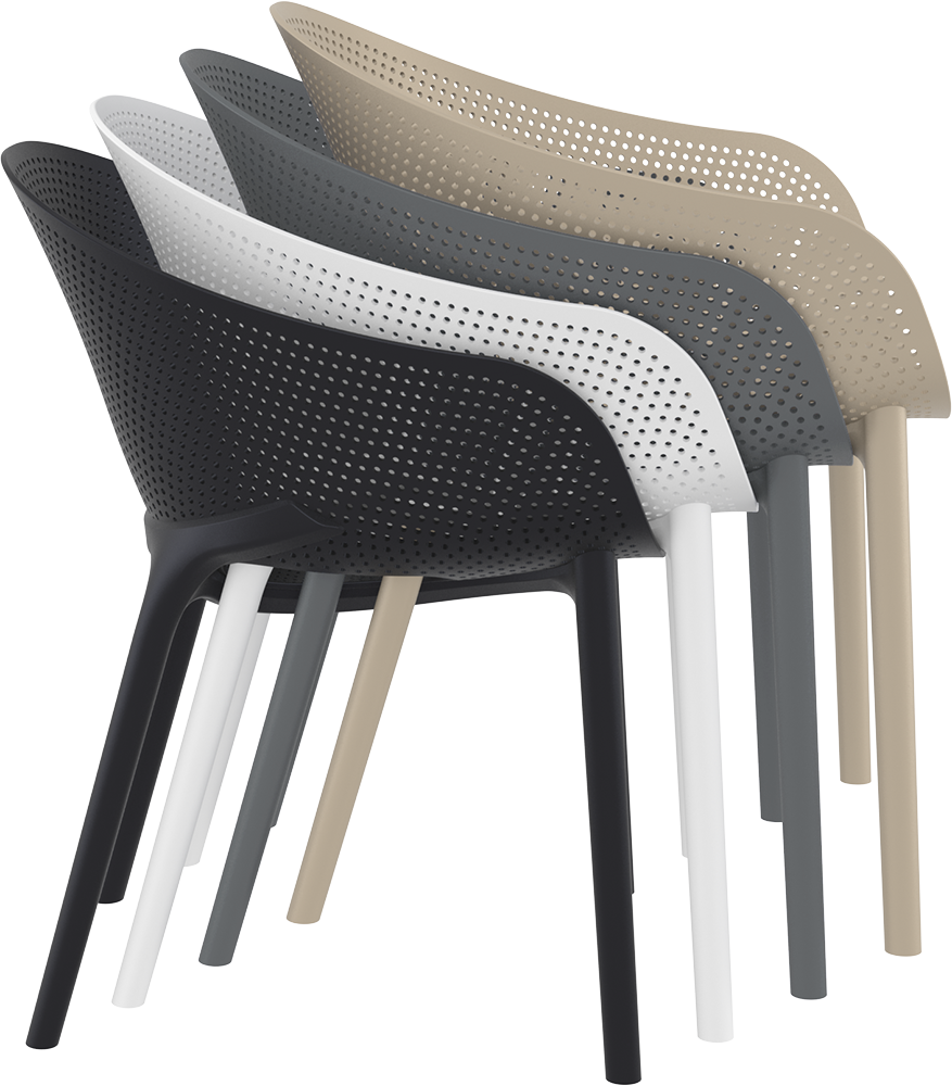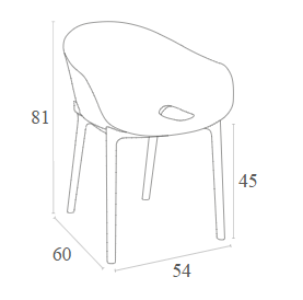 Кресло из стеклопластика с защитой от ультрафиолета. Для использования на улице и внутри помещений. Одно из лучших кресел по степени удобства. Прочное, надёжное. Сертифицировано CATAS и является одним из наиболее часто используемых кресел в уличных кафе.