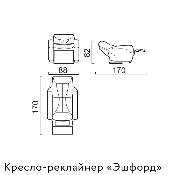 Кресло-реклайнер Эшфорд с электрическим приводом трансформации в положение релакс.
